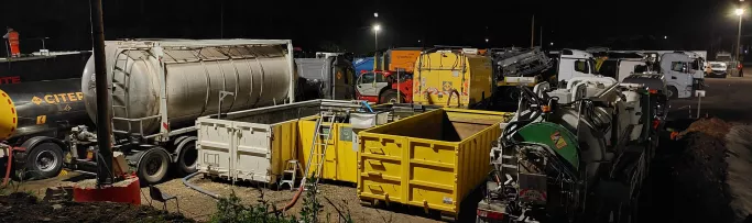 La phase amiante : la première étape consiste à raboter le revêtement routier. Pour ce faire, PLB a notamment fourni l’eau à Soloc grâce à ses citernes. Puis nos balayeuses prennent le relais en aspirant les agrégats amiantés. Ce sont ensuite nos laveuses THP qui finissent le travail avant de confier les eaux de lavage à la section Traitement des Eaux de PLB Environnement. Ceci permettra de les rejeter ou les réutiliser en limitant tout risque de pollution (la libération de ces eaux filtrées dans le milieu naturel est soumise à un organisme de contrôle). Ensuite, c’est la deuxième phase qui commence.